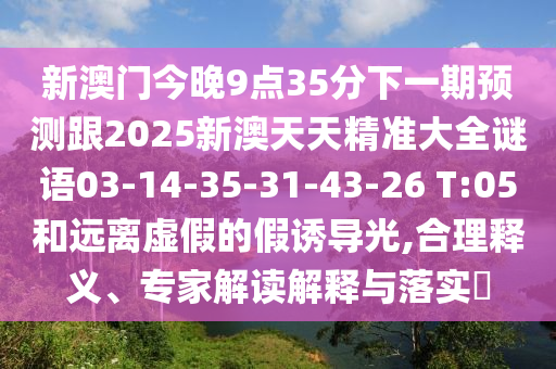新澳門(mén)今晚9點(diǎn)35分下一期預(yù)測(cè)跟2025新澳天天精準(zhǔn)大全謎語(yǔ)03-14-35-31-43-26 T:05和遠(yuǎn)離虛假的假誘導(dǎo)光,合理釋義、專(zhuān)家解讀解釋與落實(shí)?
