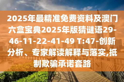 2025年最精準(zhǔn)免費(fèi)資料及澳門六盒寶典2025年版猜謎語(yǔ)29-46-11-22-41-49 T:47-創(chuàng)新分析、專家解讀解釋與落實(shí),抵制欺騙承諾套路