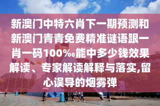 新澳門中特六肖下一期預測和新澳門青青免費精準謎語跟一肖一碼100‰能中多少錢效果解讀、專家解讀解釋與落實,留心誤導的煙霧彈