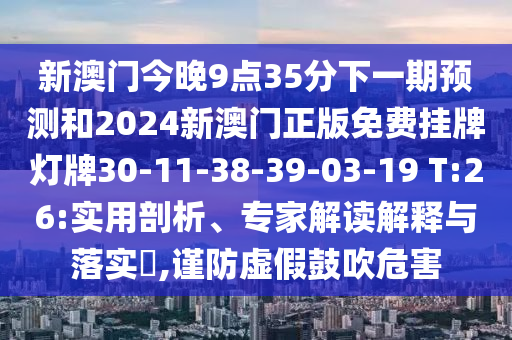新澳門(mén)今晚9點(diǎn)35分下一期預(yù)測(cè)和2024新澳門(mén)正版免費(fèi)掛牌燈牌30-11-38-39-03-19 T:26:實(shí)用剖析、專(zhuān)家解讀解釋與落實(shí)?,謹(jǐn)防虛假鼓吹危害