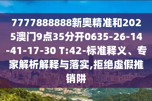 7777888888新奧精準和2025澳門9點35分開0635-26-14-41-17-30 T:42-標準釋義、專家解析解釋與落實,拒絕虛假推銷阱